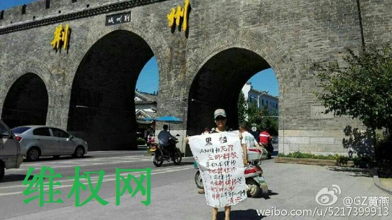 据这伙警察便衣对黄燕说:是因为黄燕举牌声援屠夫和8月7日在荆州举牌声援律师,并拍照发到微博上,他们奉中央国保及国家安全局和公安部给他们下发的三封加急密报而绑架,叫黄燕不要找他们,要找找公安部和中央。