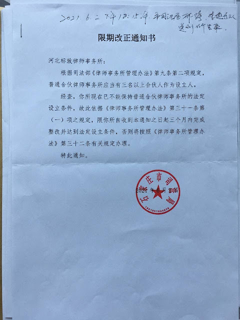 2021年6月2日,市司法局非法要求我所整改,6月16日向司法厅复议,至今不理。