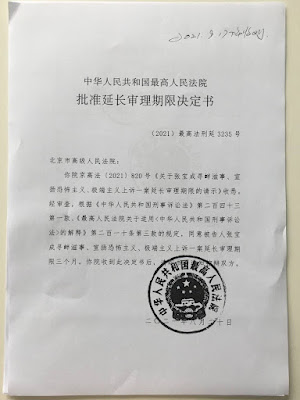 (维权网信息中心报道)2021年9月23日,本网获悉:2021年8月20日最高院决定张宝成案二审第三次延期。2021年1月11日,北京高院对张宝成案二审立案;二审正常两个月审限到3月11日;北京市高院自行延长两个月审限,到5月11日;最高院批准第二次延期3个月,应该是到8月11日。第三次延期应该是到11月11日。
