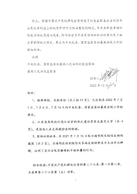 (维权网信息中心报道)2022年12月30日,本网获悉:今天是2022年的年终倒数第二天,维权人士张建平先生根据江苏省高院执行局汪法官的意见,及中共《纪律处分条例》的相关规定,继今年七月份后,再次向中央纪委、国家监委驻最高人民法院工作组,提交宜兴法院在其二十余年的人身损害赔偿案件的审判与执行中徇私枉法、及借困难补助实施中饱私囊行为的举报,探究立法中形成的良法,为何在司法中变异为恶法的根源。