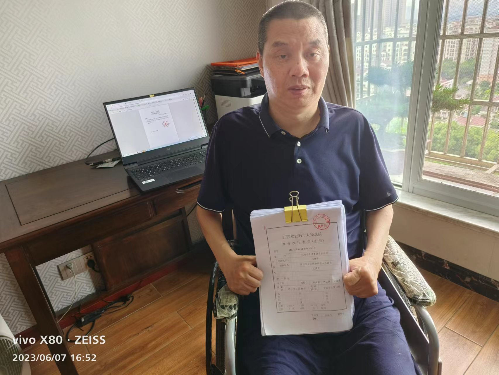 2023年4月17日,宜兴法院以“已通过26万司法救助方式执行完毕”为由,对恢复执行的执行案件作出结案通知书。